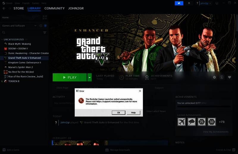 几个小时前,R星在PC上推出了《给他爱5》强化版。由于添加了一些光追功能,外媒DSOGaming的记者决定试一试,结果却发现R星自家的启动器实在是烂到家:在花了两个小时搞这个启动器后,外媒记者放弃了尝试。