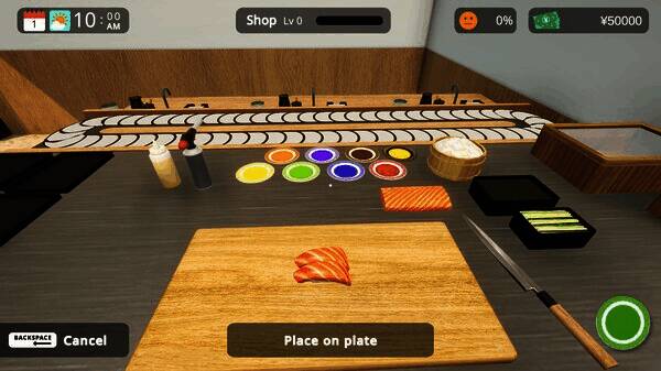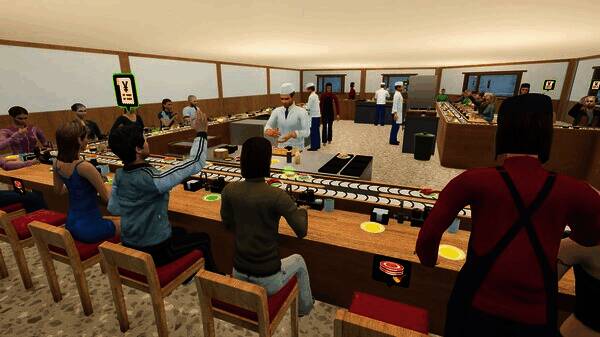 《回转寿司模拟器》游戏中,玩家经营自己的迴转寿司店。制作寿司、为顾客服务、处理付款、清理桌子、雇用员工以及设计餐厅的传送带。自己设定价格,管理麻烦的顾客,并扩大你的寿司店。