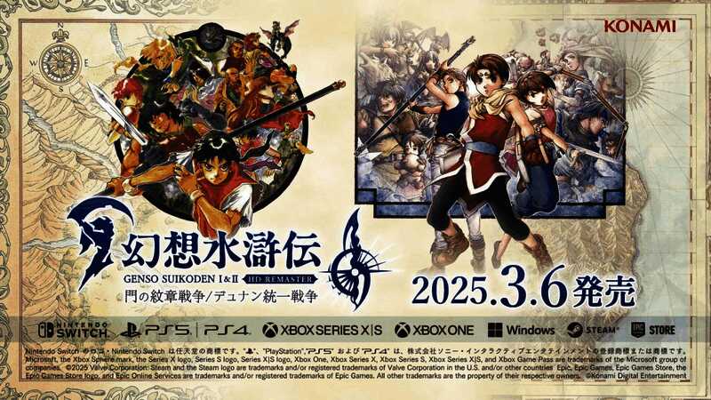3月4日,科乐美发布了《幻想水浒传1&2 高清复刻合集》的发售预告,该作是《幻想水浒传》和《幻想水浒传2》的高清复刻合集版,预计将于3月6日发售,登陆PS5、PS4、Xbox Series X|S、Xbox One、Switch、Steam和Epic。