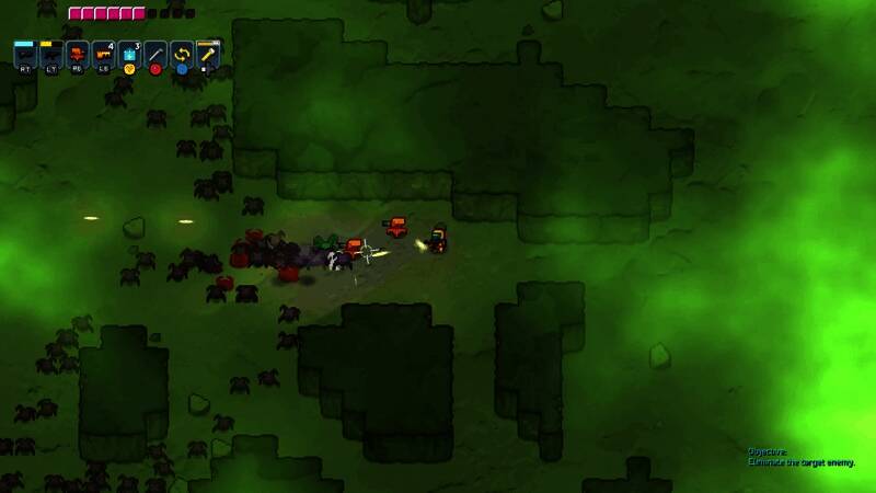 本作是一款设定在被敌对外星人占领的太阳系中的2D动作Roguelite游戏。穿上战甲,搜集物资,拿起武器,和敌人的虫群作战,探索废弃的前哨,猎杀巨型BOSS。每次任务都让你离回到地球、拯救人类更近一步。