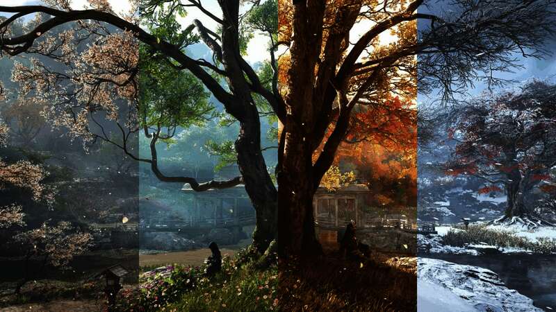 《刺客信条:影》官推发布了新的宣传视频,视频以动态环境为特色,展示了春夏秋冬四季交替的封建日本环境和天气效果。