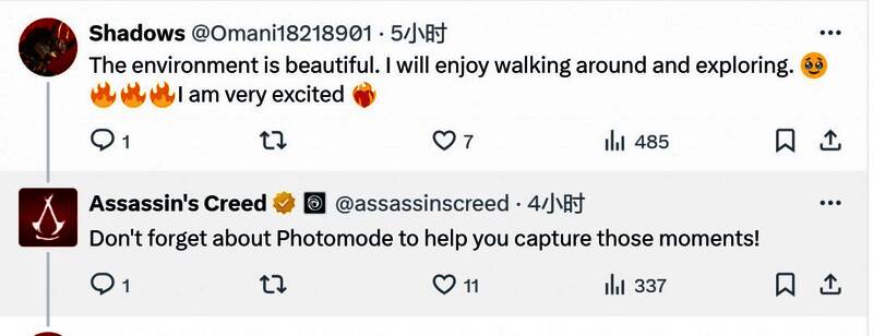 官推友情提示玩家:《刺客信条:影》支持拍照模式