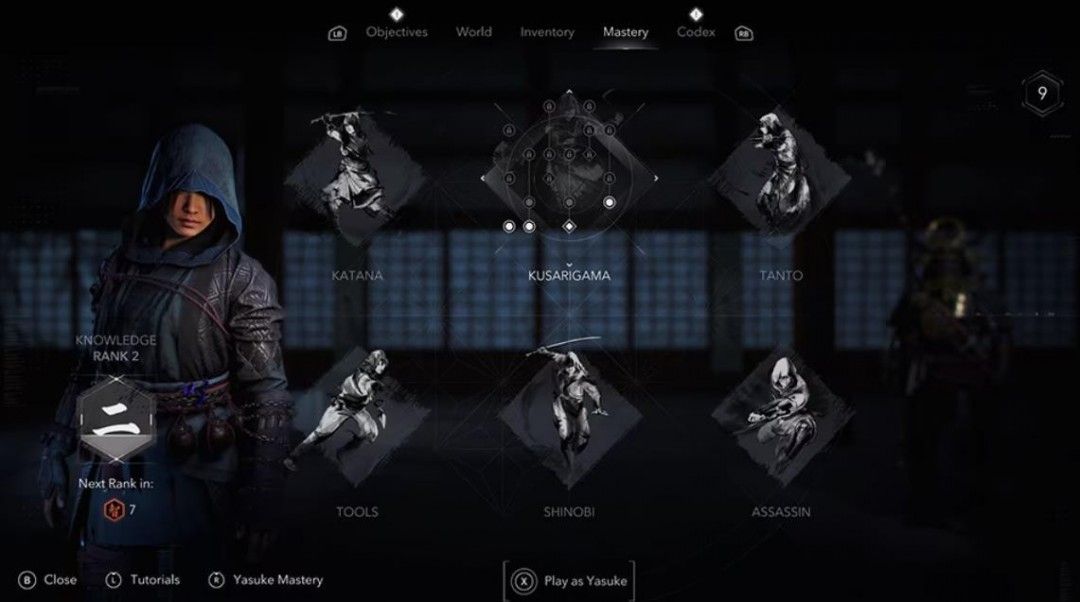 精通点数用于解锁角色专属技能树,例如忍者技能与武士刀专精,玩家可以通过这些技能树解锁新连招,提升战斗效能并激活致命技能。而知识等级则通过活动(如祈祷、收集品探索)提升。在冒险旅途中,玩家可以随时重置技能点,以适应新的游戏风格。