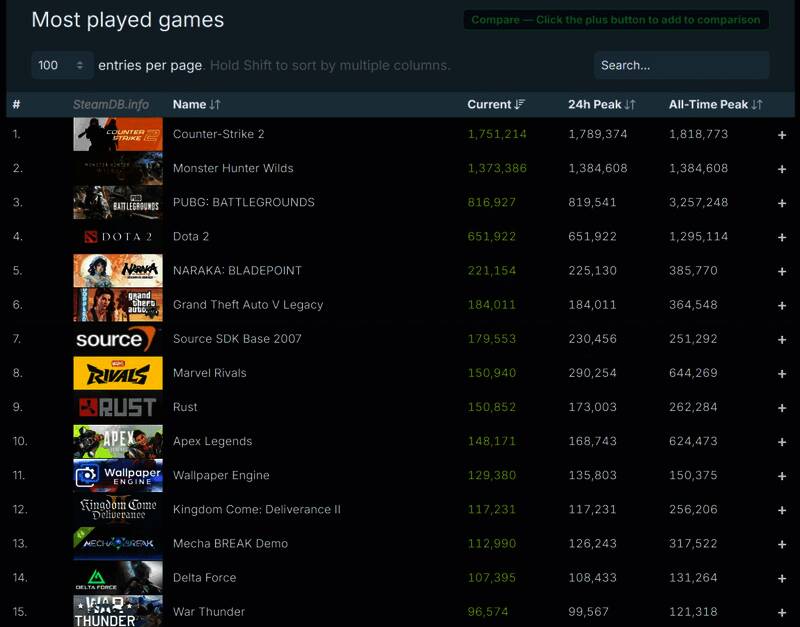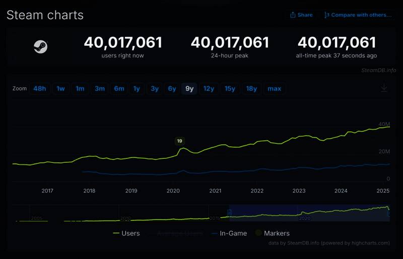 受《怪物猎人:荒野》驱动,Steam首次同时在线峰值超过了4000万,创历史新高,当前在线大约1260万人。