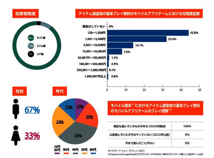 日前日媒株式会社HIKE发布了2024年日本手游氪金现状调查,结果显示一成玩家每月氪金1万以上。