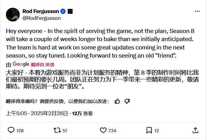暴雪《暗黑》总经理Rod Fergusson发推,宣布《暗黑破坏神4》第八赛季延期,这是因为制作时间将比最初预期的要长几周。团队正在努力为第八赛季带来一些精彩的更新。他还称玩家可以期待见到一位老“朋友”,暗示一个熟悉的角色将回归。