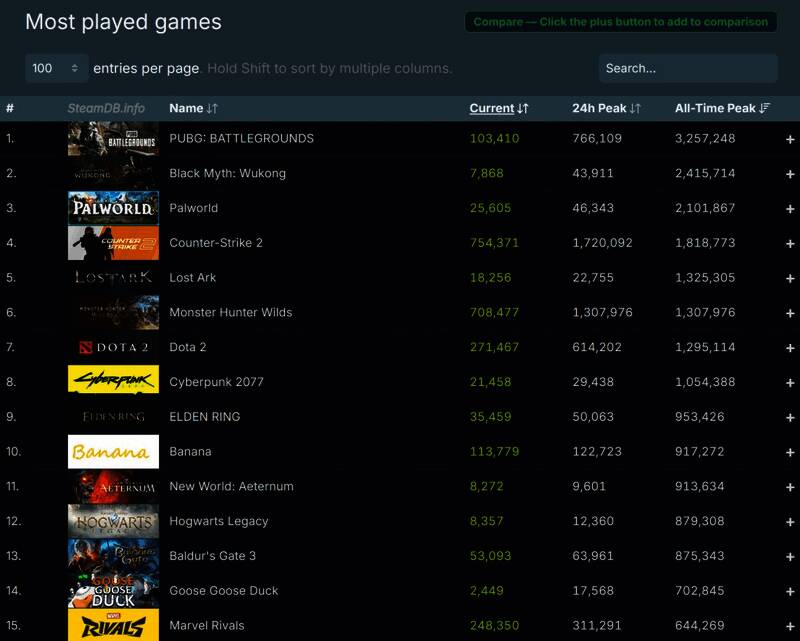 《怪物猎人:荒野》目前是Steam上第六大游玩人数最多的游戏,和第五名《失落的方舟》只有2万人差距,相信很快会超过后者。