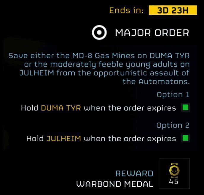 目前,玩家被要求在保卫研发毒气地雷的实验室与拯救“身体羸弱的青年”之间做出选择,类似游戏刚推出时在反坦克地雷和拯救儿童之间做选择。当时社区选择了拯救儿童,因此 Arrowhead 在现实中向儿童慈善进行了捐款。现在玩家已经不用再做选择,堪称是“奇迹”。