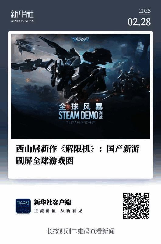 2月28日,新华社盛赞《解限机》在近期测试中取得的佳绩,直言这款游戏刷屏了全球游戏圈。