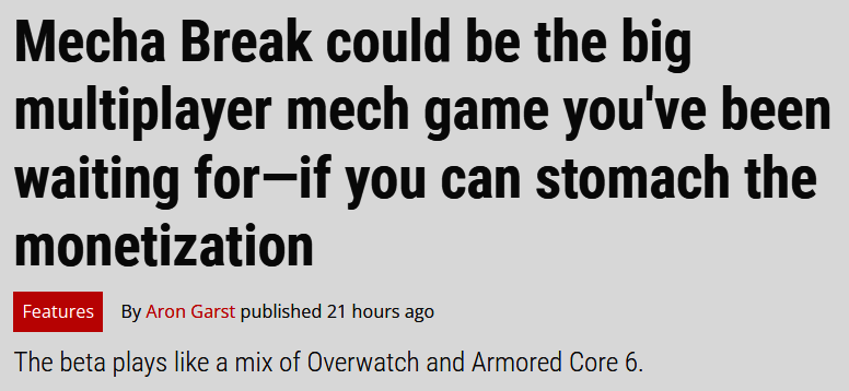 IGN:“《解限机》的高速战斗令人联想到《飞翼高达》的经典记忆,操作流畅如《龙珠》。”(来源:IGN《Mecha Break: The Final Preview》)