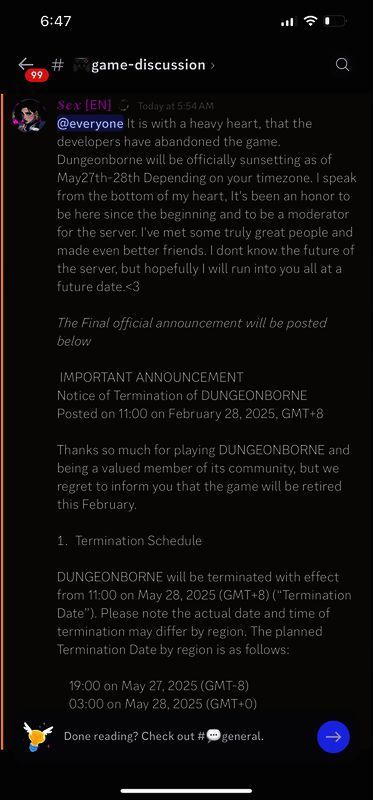 最近《Dark andDarker》已经重新上架 Steam。而《Dungeonborne》开发商 Mithrill Interactive日前宣布,游戏将于 5 月 28 日停服,并且已于今天(2月 28 日)停止了新账户注册和游戏内购买。