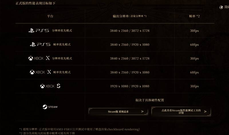 正式版的性能表现目标如下