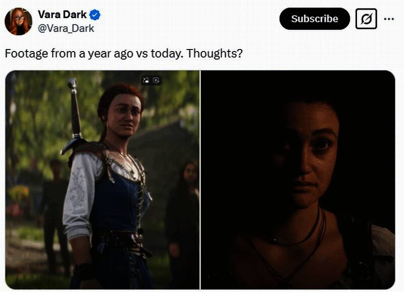 《神鬼寓言4》新实机视频公布后,女主的形象再次引发玩家讨论。知名女记者Vara Dark将其与之前预告中形象进行对比,评论区有人认为:“新实机中女主看起来顺眼些,眼睛和表情更自然。但从整体来看还是没吸引力。”“看起来还是个男人”“角色模型没有太多变化,但光影效果更好。”