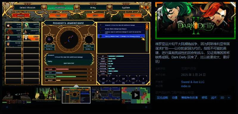 回合制战斗是 Dark Deity2 的核心。你的 20 个英雄可以选择 45 种职业,每种都有各自的强大能力、被动效果和战术特点…