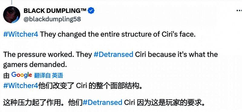 国外网友指出,CDPR更改了希里脸部的整个结构,更加女性化,女性特征更多了。玩家的压力给到了,这是玩家的巨大胜利。