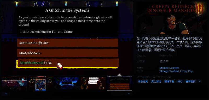 今日(2月26日),类银河恶魔城三消游戏《Creepy Redneck DinosaurMansion 3》Steam页面开放,游戏暂不支持中文,预计年内发售,感兴趣的玩家可以点击此处进入商店页面。
