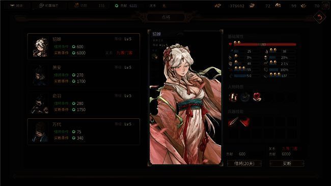 当然,无论怎么说一款挂着“三国”名号的游戏,不可能把所有重心都放在地方政治斗争和程序化NPC上,“三国”这一段历史最核心的人物“英雄”也有在游戏中出现。为了满足不少三国策略游戏玩家的武将收集癖好,《猛将三国》设计了160+拥有独立立绘、建模、技能与专属装备的武将。他们有的以白身散落各地,有的则已投身名门大族,玩家需要根据自己的喜好以及战略规划,来决定是优先收集在野武将还是从他人处挖角。