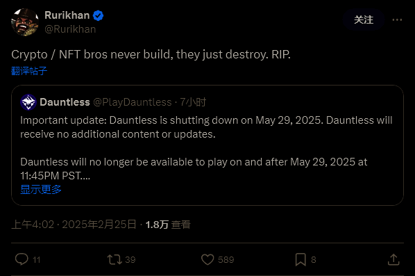 公告写道:“《无畏》将于 2025 年 5 月 29 日关服。《无畏》此后将不再获得额外的内容或更新,游戏将在 2025 年 5 月 29 后无法再游玩。”在社交媒体上,官方额外写道:“感谢所有参与《无畏》旅途地人们。”