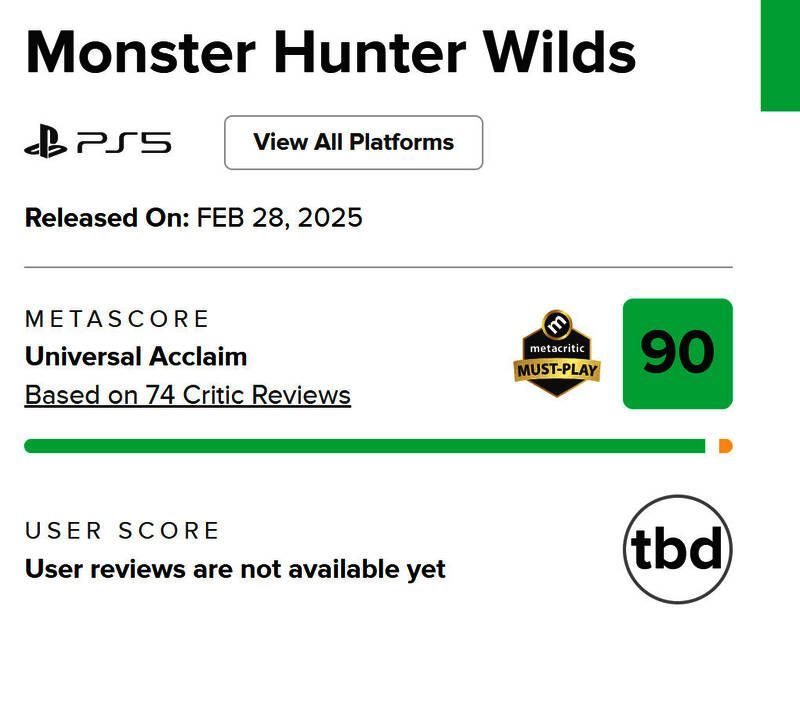 《怪物猎人:荒野》海外媒体评分解禁,IGN 8分,但获得VGC、Press Start、SiliconEra等多个媒体的满分评价。