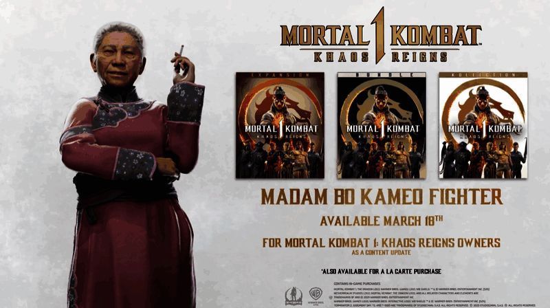 发行商华纳兄弟游戏和开发商NetherRealm Studios宣布,《真人快打1》的DLC角色T-1000和波夫人将于3月18日上线,并面向购买了「混沌统治」拓展包的玩家使用,随后将于3月25日全面发售供购买。
