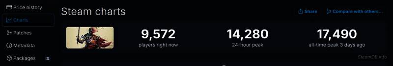 《宣誓》的Steam在线人数仅仅过了三天就出现了不小的下滑,从首发1.7万人同时在线已经降至当前24小时的1.4万人,当前在线玩家更是少到不到9572人。
