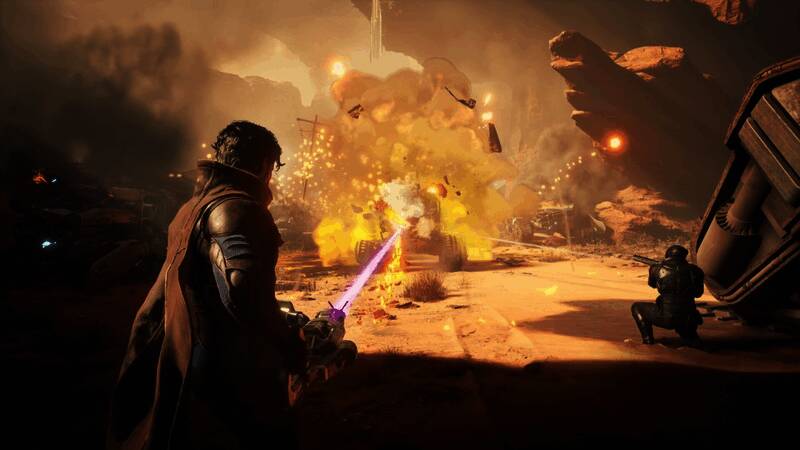 启动基准测试序列,测试你的PC性能并调整显卡设置,以找到最适合你的平衡点。飞行序列将带你从一处玩家建造的沙漠基地飞到哈克村——那个阴沉而繁忙的哈克南玩家中心,最后以与一只巨大的沙虫近距离接触作为结尾。