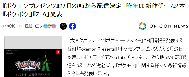 ·看看往年的节目内容,2022年时公布了《宝可梦:朱紫》、2023年则发表了与Netflix首次合作打造的全新动画《宝可梦 礼宾部》,去年呢则公布了超热门手游宝可梦卡牌游戏以及预计登陆Switch的《Pokemon LEGENDS Z-A》。