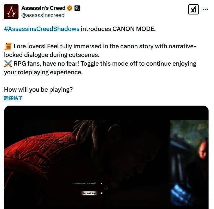 近日《刺客信条》官方介绍了《刺客信条:影》“正史模式”(CANON MODE)。在正史模式下,分支的对话选项将会消失,剧情将会按照官方预设的方向沉浸式进行游戏。