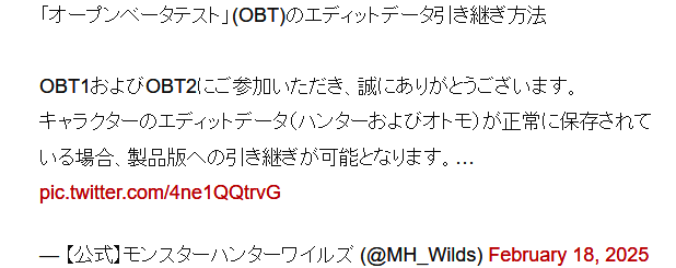备受万众期待的《怪物猎人:荒野》即将于2月28发售,首发登陆PC(Steam),PS5和Xbox Series X|S平台,支持简繁中文字幕,日前官方公布了公测角色信息转移正式版方法,并不太难。