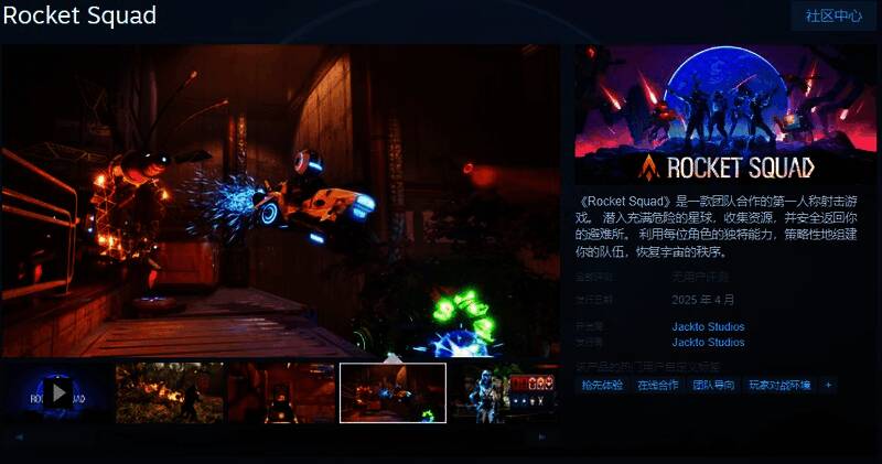 今日(2月19日),团队合作第一人称射击游戏《Rocket Squad》Steam页面开放,2025年4月发售,游戏支持简繁体中文,感兴趣的玩家可以点击此处进入商店页面。