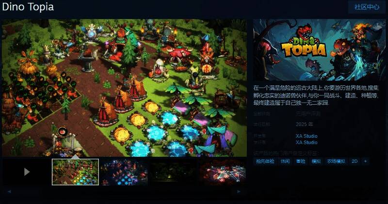 今日(2月19日),原始人题材沙盒肉鸽游戏《Dino Topia》Steam页面开放,明年发售,游戏支持简体中文,感兴趣的玩家可以点击此处进入商店页面。