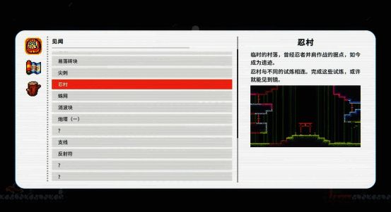 游戏内不包含数值上的成长,只有屏幕前的玩家的操作熟练度在变强,从而获得真正的成长,最终达致糅合精准、速度、优雅的忍者之风。