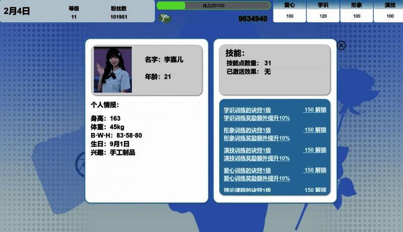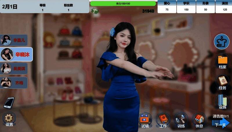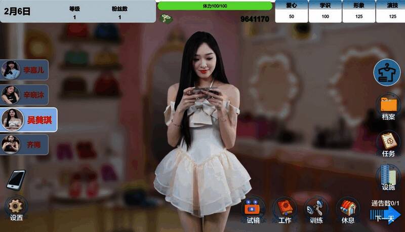 游戏拥有4位不同性格的艺人可以培养,还有近300条真人拍摄的视频穿插在日常安排的每一处,让每次行程都充满惊喜