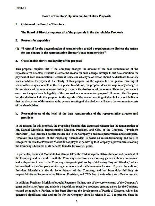 回应指出,股东针对社长Kazuki Morishita提出的论点(其社长的年薪为3.4亿日元,接近任天堂社长的3.6亿日元年薪,且普遍高于日本同行业的同岗位薪酬)“是基于误解的,没有认识到社长在实现公司增长方面所发挥的作用,以及他作为公司事实上的创始人领导公司业务超过20年。”