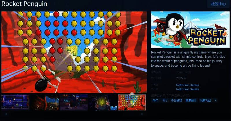 今日(2月18日),2D飞行动作游戏《火箭企鹅》Steam页面开放,2025年发售,支持繁体中文,感兴趣的玩家可以点击此处进入商店页面。