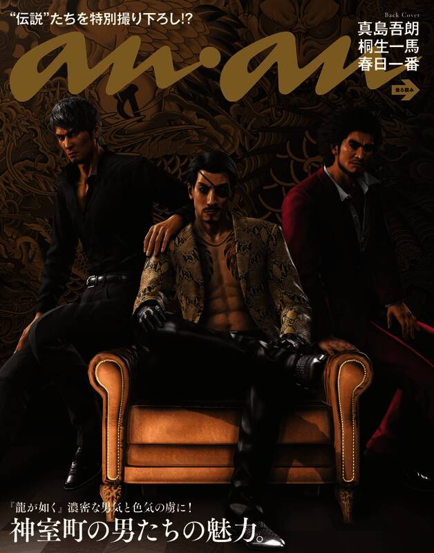 近日日本著名女性杂志《ANAN》在推特上,分享了第2435期特辑“性感的法则”封面。《如龙》系列主角桐生一马、真岛吾朗和春日一番登场亮相。