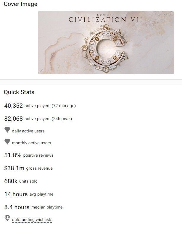现在据VG Insights最新数据显示,《文明7》在Steam上的预估销量已突破68万份,销售额达到3810万美元(约合人民币2.76亿元)。而平均游玩时间为14小时。