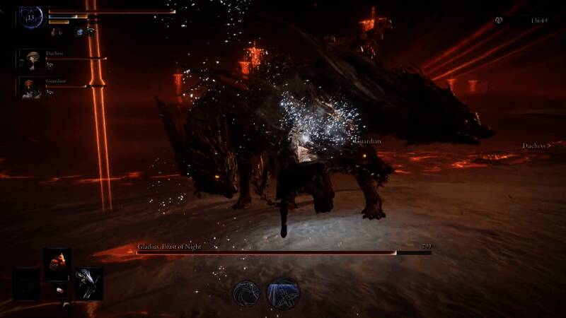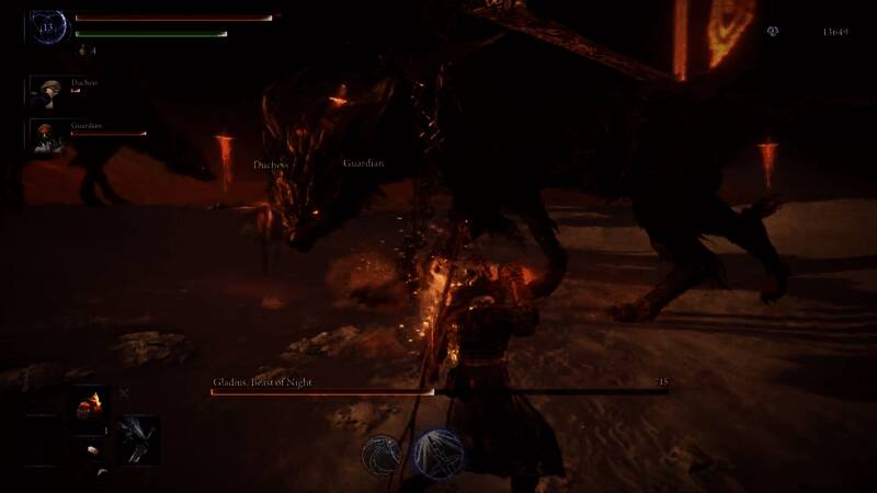 从演示看,《艾尔登法环:黑夜君临》虽然支持单人游玩,但看起来,游玩的时候三人组队体验是最好的,毕竟难度不小。最终Boss为Gladius。