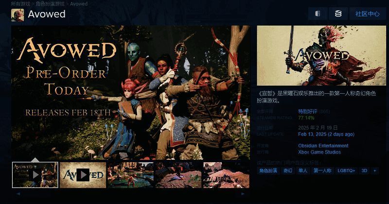 黑曜石工作室的奇幻角色扮演游戏《宣誓》即将于 2 月 19 日正式发售,目前已经开启预购。根据 Steam 的官方畅销榜,游戏的预购表现相当不错。
