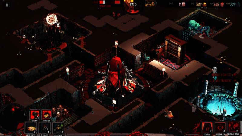 地牢建造与战术结合:开辟广阔的巢穴,抵御敌对邪教和调查者,管理资源以扩展你的恐怖领域。