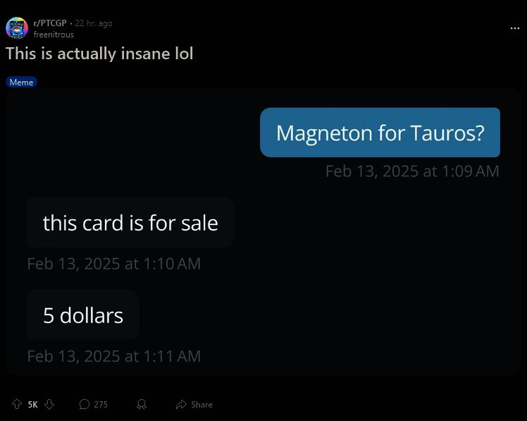 同时,游戏内卡牌交换正如其名,是需要用卡牌来交换的。在《TCGP》中,要求使用同等稀有度的卡牌进行交换,因此销售 EX 卡牌的这些人将能再获得另一张 EX 卡牌,并一直反复交易“空手套白狼”。