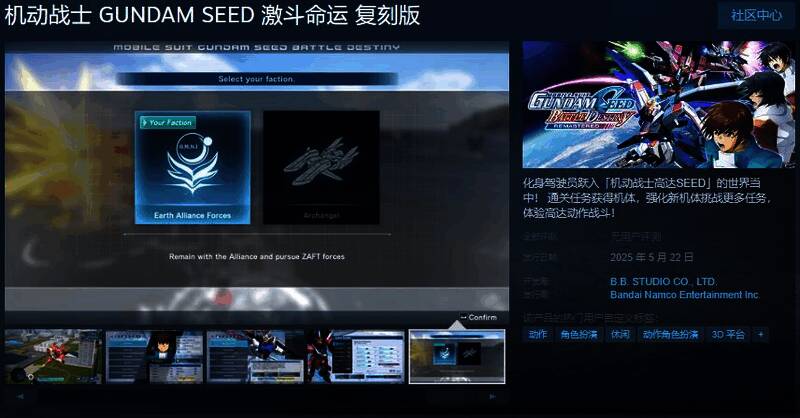 今日(2月14日),高达对战游戏《机动战士GUNDAMSEED激斗命运复刻版》开启预购,国区售价198元,预计于2025年5月22日发售,感兴趣的玩家可以点击此处进入商店页面。