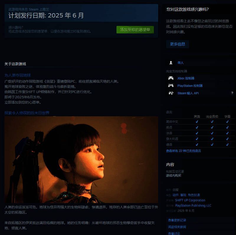 《星刃》Steam商店页公开,由PlayStation发行,自带简体中文和中文配音。好消息是,《星刃》Steam版并不需要PSN账户,看起来也没有D加密系统。