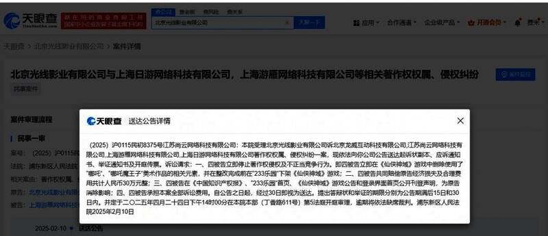 近日据媒体报道,仙侠题材ARPG手游《仙侠神域》因使用了《哪吒》动画的美术元素,被电影出品方光线影业起诉。一案将于4月开庭审理。