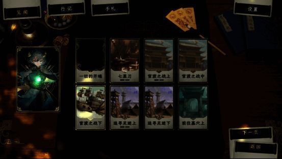 在游戏的过程中,玩家能够收集到散落在游戏各处的“手札”,这些手札包含了三国时期的各种物件的故事,如大家所熟悉的七星宝刀为王允赠与曹操用于刺杀董卓所用。通过手札系统,玩家也能够了解到游戏中每一个物件所代表的含义,通过这些信息碎片,一步步地推断出隐藏在故事背后的真相。