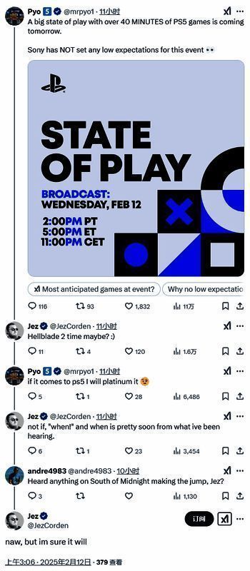 另外,在回复另一用户的问题时,Jez Corden还表示他可以确定另一款Xbox第一方游戏《午夜之难》最终也会登陆PlayStation,该作目前定于2025年4月发售。