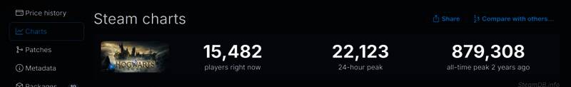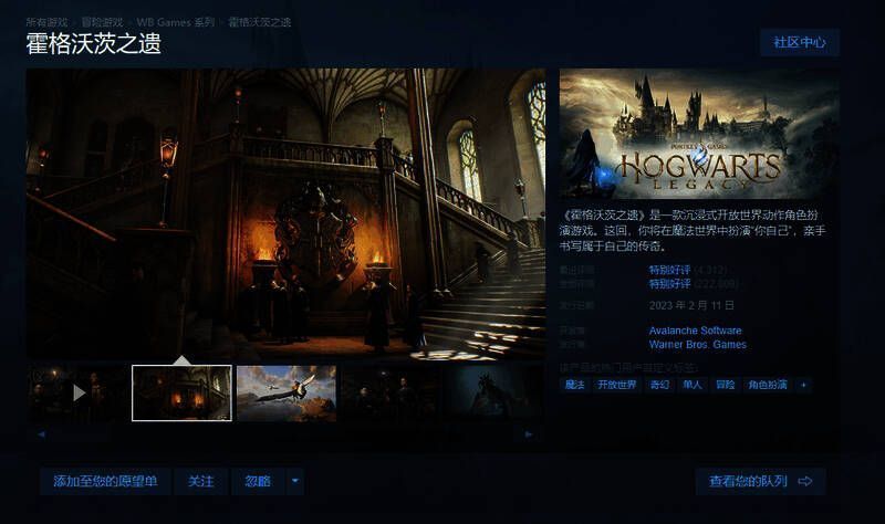 《霍格沃茨之遗》作为一款单机游戏,在Steam上的首发同时在线峰值超过87.9万人,全球销量超过了3000万套,目前续作正在开发中。