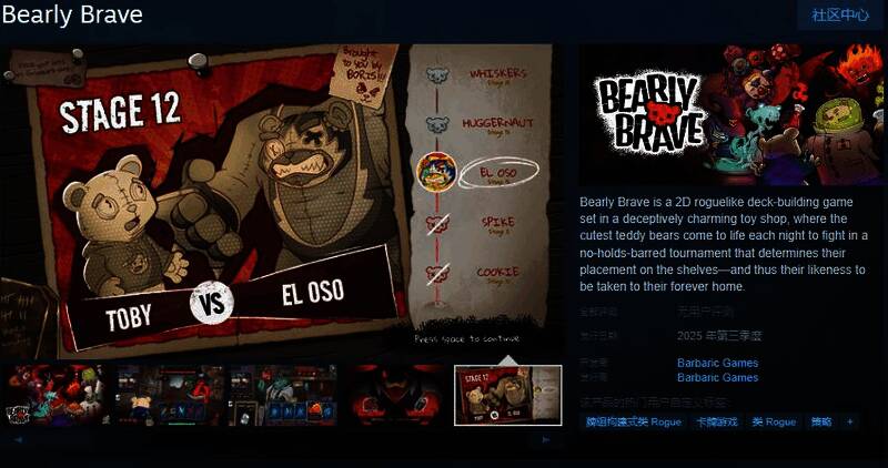 今日(2月11日),Roguelike卡牌构筑游戏《BearlyBrave》Steam页面公布,2025年第三季度发售,暂不支持中文,感兴趣的玩家可以点击此处进入商店页面。