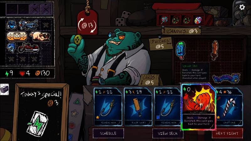 购买武器、技能卡、糖果和补丁。