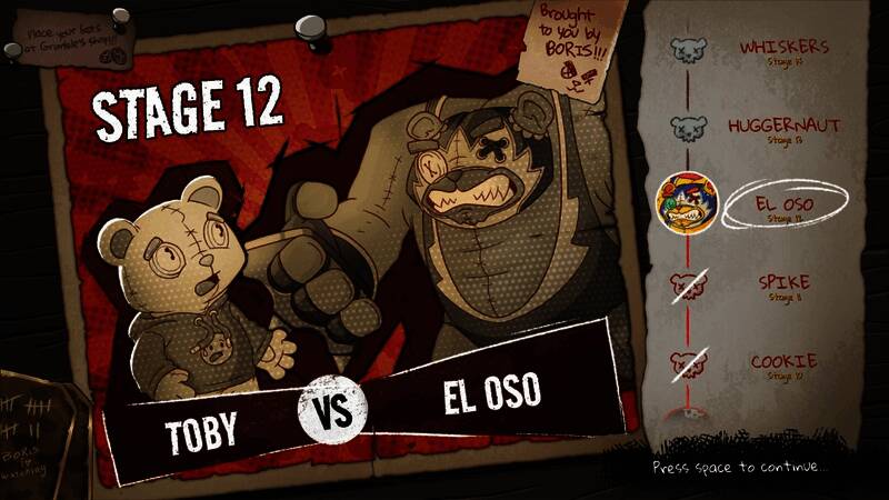你将扮演托比(Toby),一只温和的泰迪熊,被残忍的鲍里斯(Boris)强迫参加这场残酷的竞赛。游戏结合了回合制策略与快节奏的卡牌构筑玩法,挑战你在托比逃离玩具店邪恶掌控的战斗中,打造独特的卡组和策略。